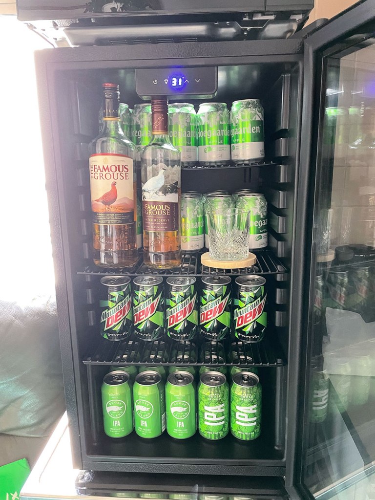 部室オープン記念で山の名前がついた炭酸ジュース「マウンテンデュー」、緑色が可愛いクラフトビール「グースIPA」、暑い夏にぴったりの爽やかな青リンゴ果汁入りのホワイトビール「ヒューガルデングリーンアップル」など取り揃えました。