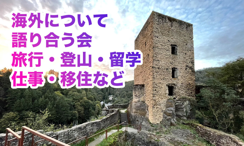 11月9日(日)は海外好き同士で旅行や登山はもちろん、留学や仕事(ワーホリ)、そして移住について語り合い、情報交換する会です。