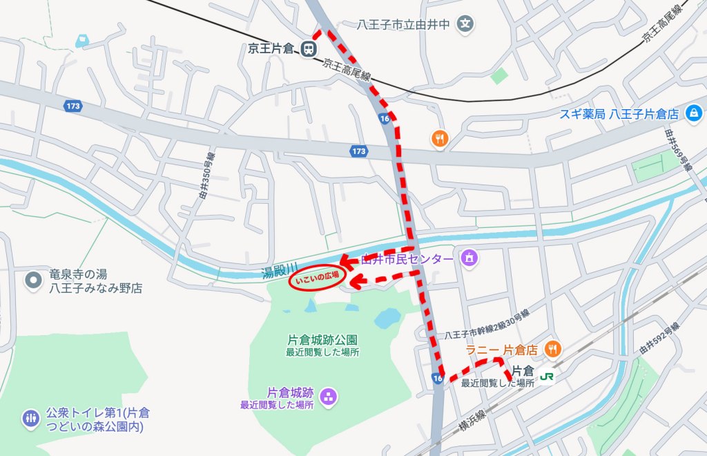 11:00〜18:00で開催しますのでお好きな時間にふらっと遊びに来てくださいね!場所は八王子市の片倉城跡公園。JR片倉駅より徒歩約5分または京王片倉駅より徒歩6分です。川沿いの桜並木の芝生「いこいの広場」が私たちのお花見会場です。以下のリンクとMAP画像ご確認ください。